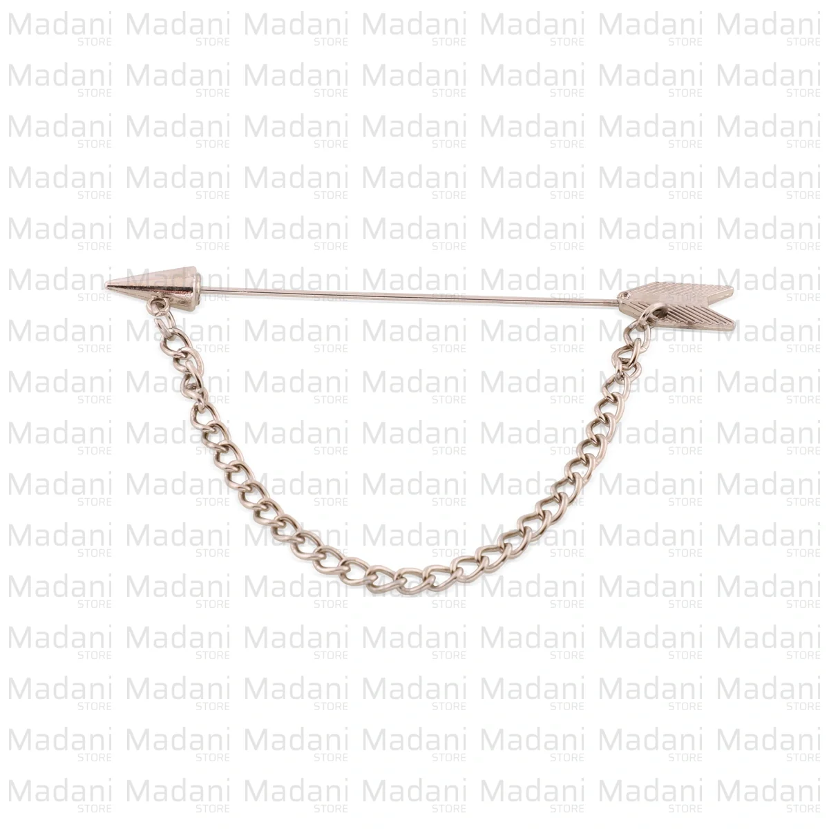 سنجاق سینه و روسری (گل سینه) زنجیردار طرح تیر (پیکان) نقرهای