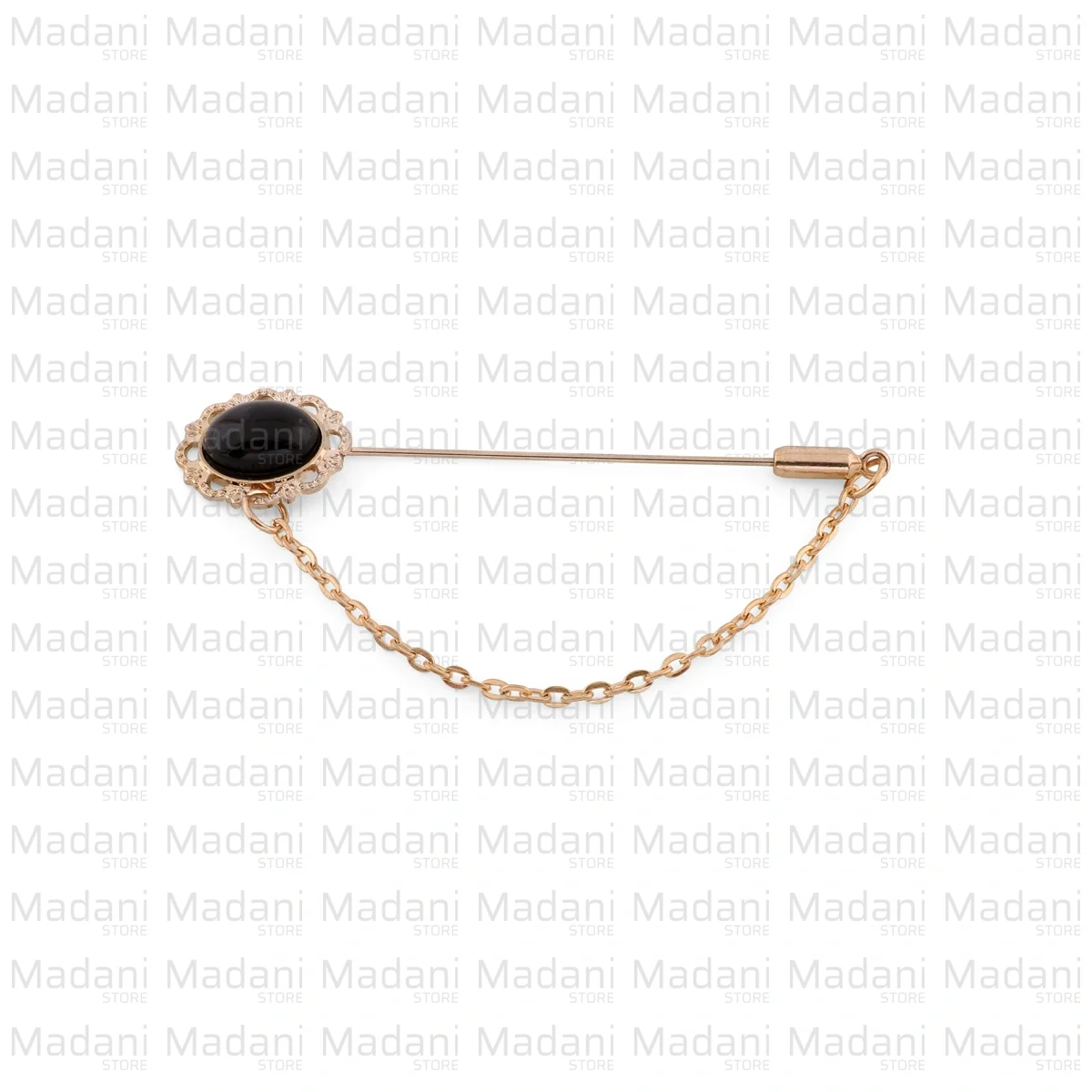 ترکیب رنگ «طلایی» بدنه و گلبرگهای فلزی با رنگ «سیاه» نگین مرکزی، تضادی بسیار زیبا و سنگین ایجاد کرده که باعث میشود این اکسسوری ظاهری مجلسی و باوقار داشته باشد.