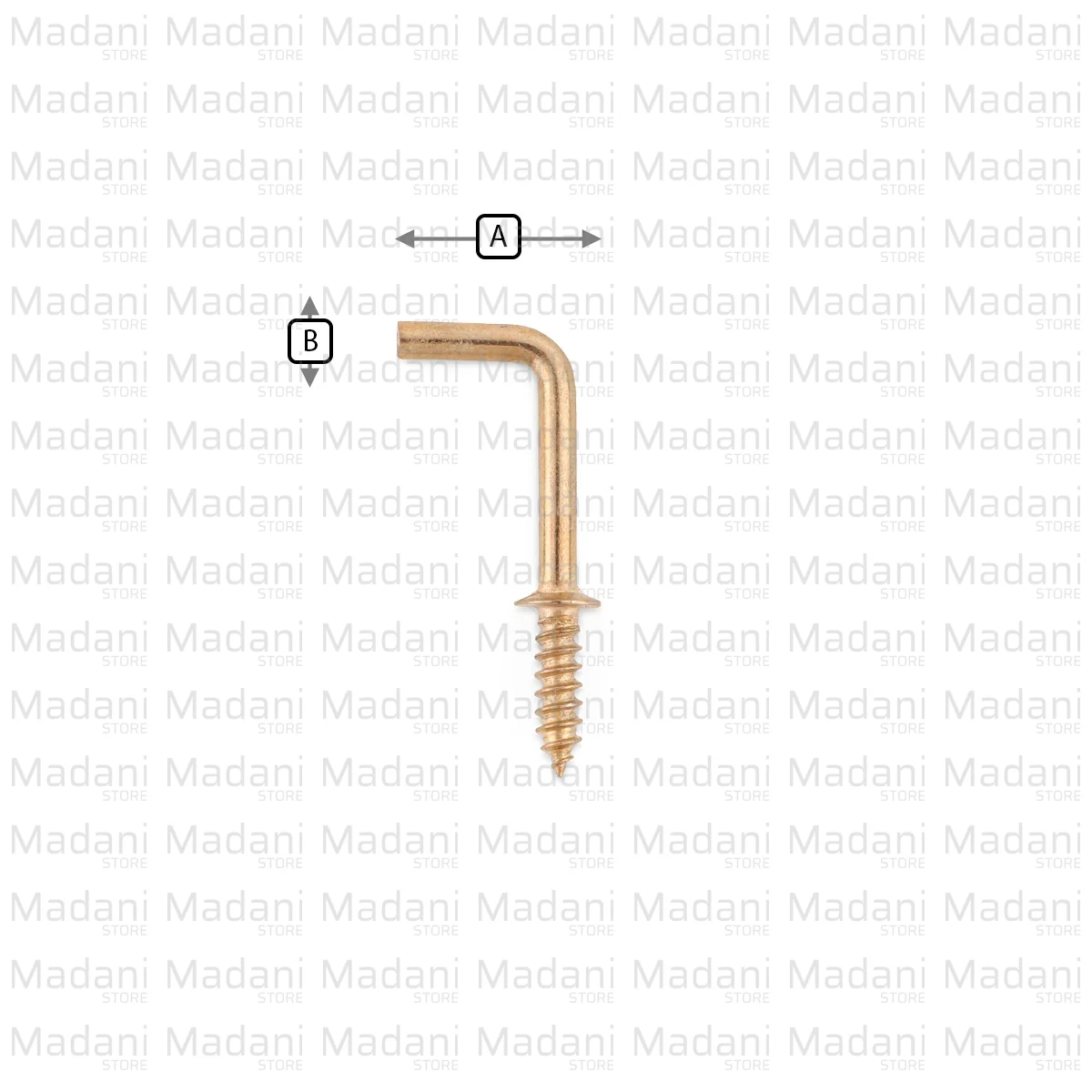 • این قلاب ال (L) شکل پیچی با زاویه ۹۰ درجه و آبکاری طلایی، یراقی ساده اما بسیار کارآمد برای تولیدکنندگان جاکلیدی‌های دیواری، تابلوهای آموزشی و ارگانایزرهای ابزار ظریف است.