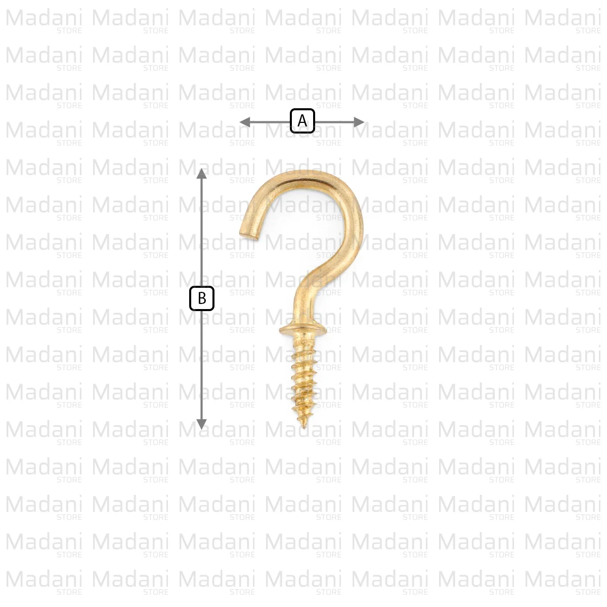 این قلاب سوالی (معروف به قلاب لیوانی) با رنگ طلایی براق و پایه رزوهدار، یراقی استاندارد و بسیار پرمصرف برای تولیدکنندگان جاکلیدیهای دیواری، شلفهای آشپزخانه (برای آویز ماگ) و استندهای تزئینی است.