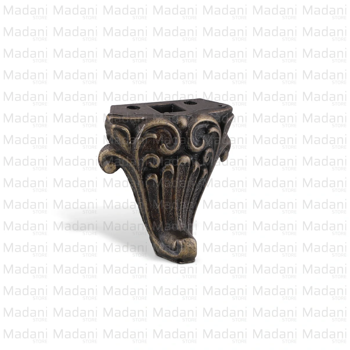 این پایه گوشه آنتیک با فرم کلاسیک «پنجه شیر» و رنگ زردقلم، یکی از محبوبترین و پرفروشترین یراقآلات برای تولیدکنندگان صندوقچههای خلعتی، جعبههای جواهرات و کنسولهای مینیاتوری است.