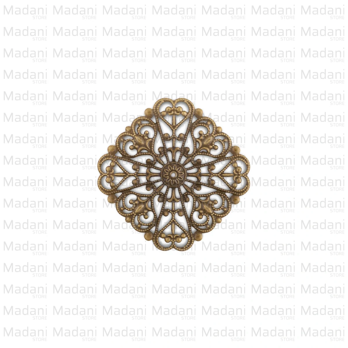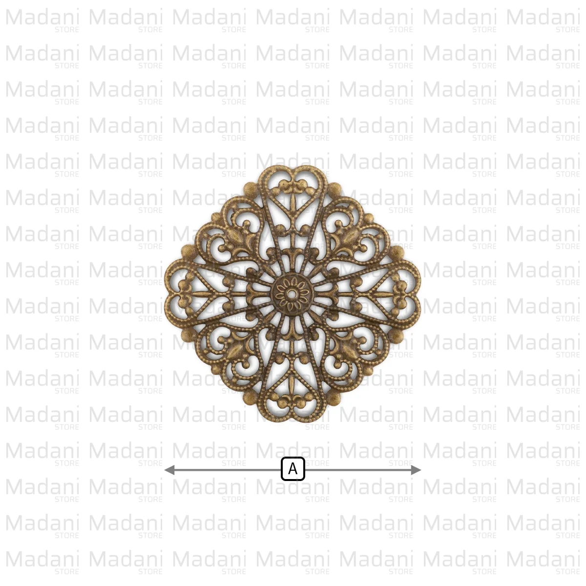 این قطعه زردقلم دارای بافت برجسته و نقطهکوبیشده (Milgrain) در حاشیههاست که ظرافت کار را دوچندان کرده و سوراخهای متعددِ طرح مشبک آن، فضایی عالی برای دوختن یا میخکوبی روی انواع سطوح فراهم میآورد.