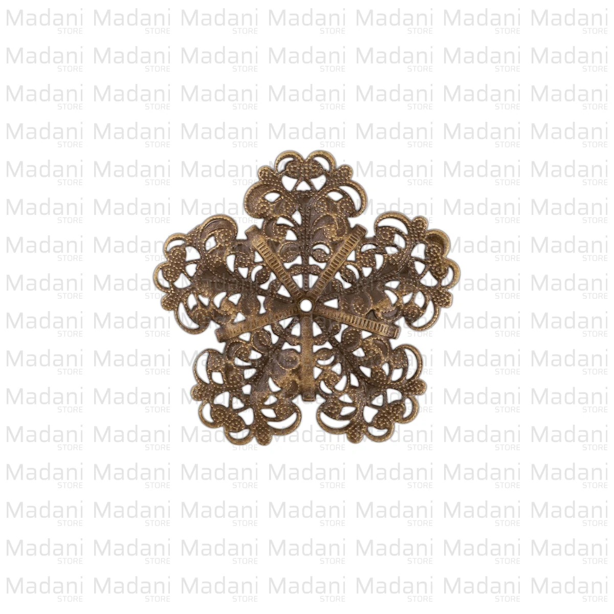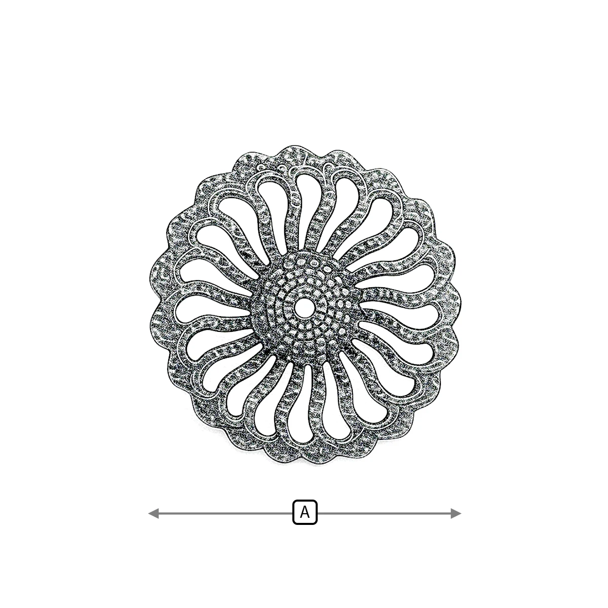 این قطعه مشبک دارای یک سوراخ مرکزی است که هم به عنوانِ نقطه اتصال در زیورآلات (Connectors) استفاده میشود و هم مکانی مناسب برای دوختن یا میخ کردن یراق روی پارچه، چرم یا چوب میباشد.