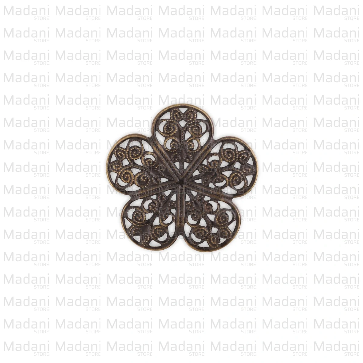 • این «گل‌توری» با قطر ۳.۵ سانتی‌متر و طرح زیبای «شبدر پنج‌پر»، یکی از لطیف‌ترین و متقارن‌ترین یراق‌ها برای تزیین جعبه‌های چوبی، کیف‌های دوشی و کارهای هنری است.
