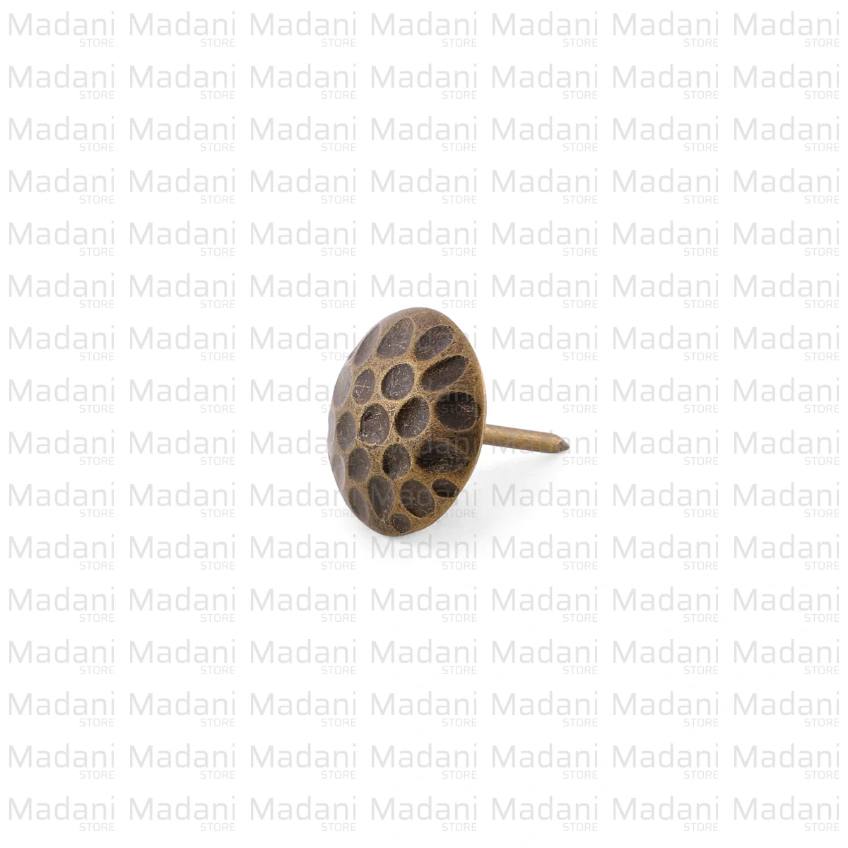 این گلمیخ آنتیک با بافت سطح «خالدار» (چکشی) و رنگ زردقلم، جایگزینی هنری و دستسازگونه برای گلمیخهای صاف و صیقلی معمولی در صنعت مبلمان و جعبهسازی است.