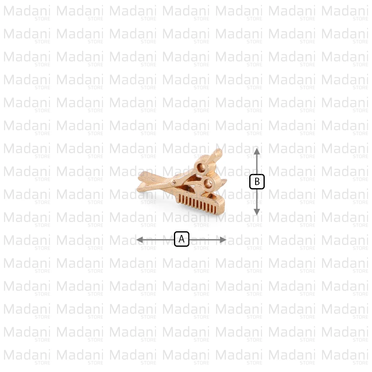 این «یراق تزیینی» یا «گل سینه»ی ظریف، دارای طرحی نمادین از یک «قیچی» و یک «شانه» است که به صورت متقاطع روی هم قرار گرفتهاند.