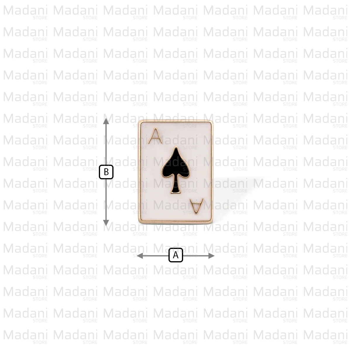 • این «یراق تزیینی» یا «گل سینه»ی فانتزی، دارای طراحی مینیاتوری و جذابی از یک «کارت بازی» (Playing Card) است که به‌طور مشخص نشان‌دهنده‌ی «تک پیک» (Ace of Spades) می‌باشد؛ نمادی که همزمان به شانس، قدرت و خاص بودن اشاره دارد.